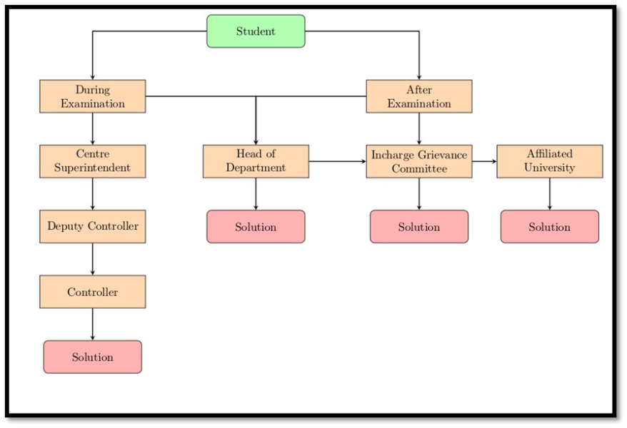 The college has an effective mechanism for redressal of grievances regarding external examination which is shown through the following flow chart: